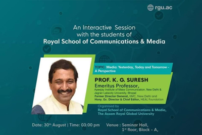 F2: Organised an interactive session on Media Yestarday, Today and Tomorrow with Prof. KG Suresh as a Speaker on 30 August 2019.