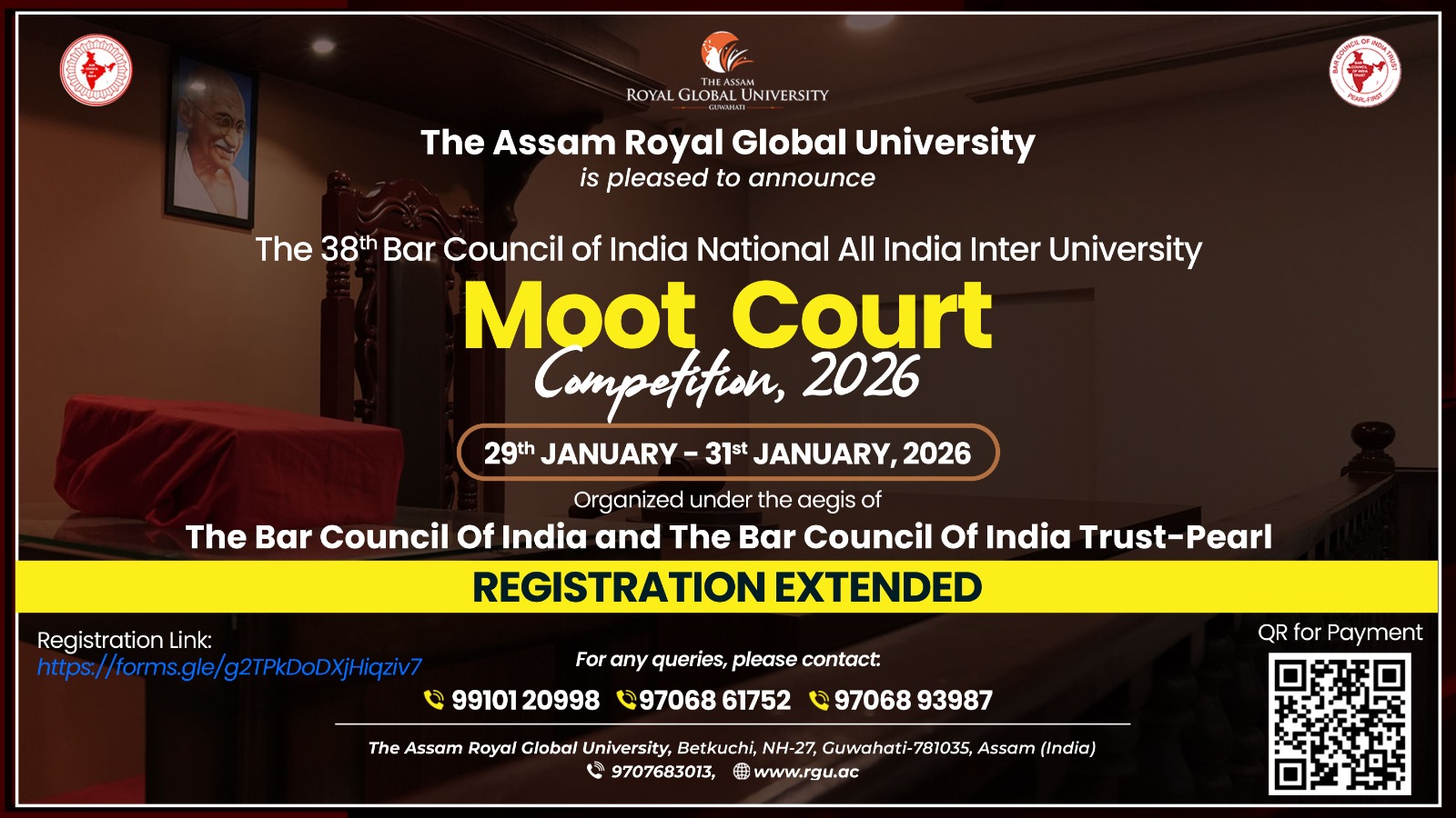 Guwahati, January 3, 2026: The Assam Royal Global University (RGU) will host the 38th Bar Council of India National Inter-University Moot Court Competition, 2026, one of the most prestigious moot court events in the country.